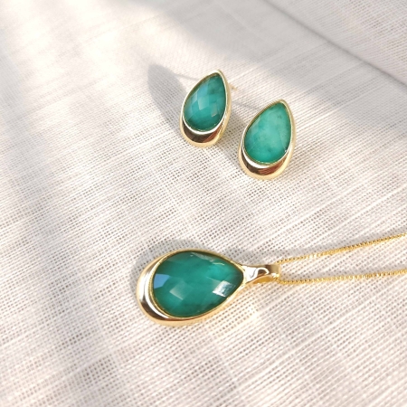 • Conjunto de Gotas com Pedras Naturais Esmeralda – Banhado a Ouro 18k