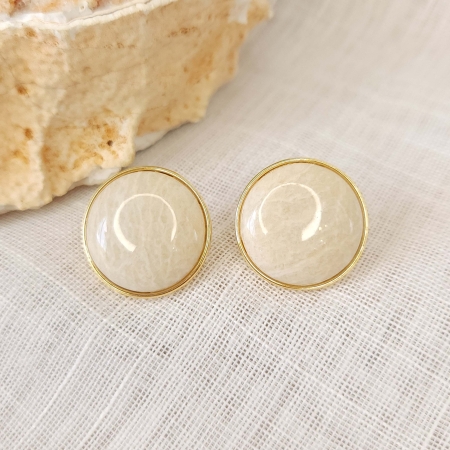 • Brinco Pedra Natural Amazonita Bege – Banhado a ouro 18k