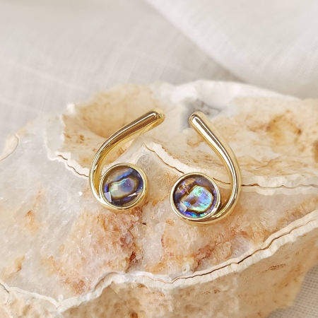 • Brinco Pedra Natural Abalone e Fio Onda – Banhado a Ouro 18k