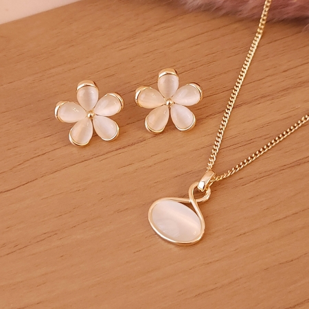 O colar e os brincos formam uma composição harmoniosa, ideal para mulheres que valorizam acessórios contemporâneos e cheios de personalidade.