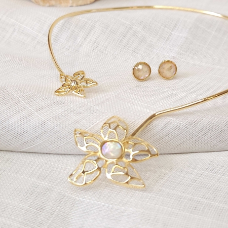 Inspirado na beleza do oceano, este brinco em formato de estrela do mar traz leveza e sofisticação. O design vazado proporciona modernidade, enquanto a pedra natural Opala do Mar adiciona brilho único e naturalidade à peça.