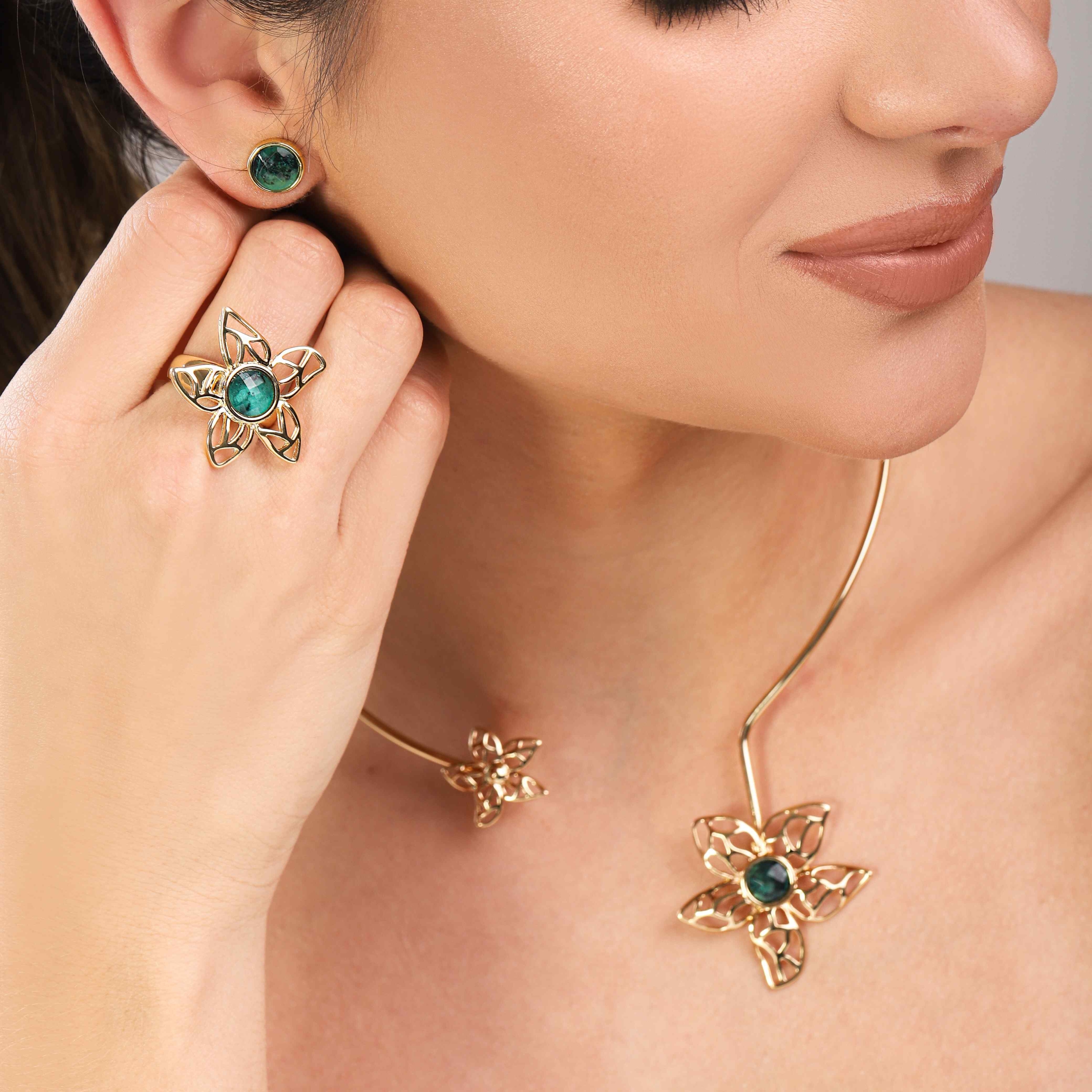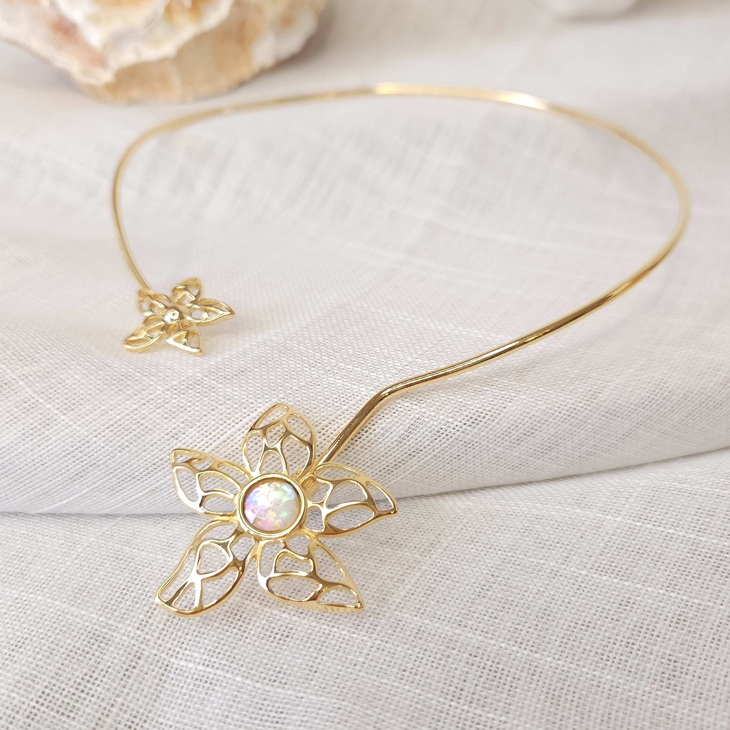 Um conjunto delicado e sofisticado que une o brilho do banho em Ouro 18k com a energia encantadora da Opala do Mar. O design em fio rígido destaca o colo com elegância, enquanto as estrelas simbolizam luz e inspiração, tornando a peça ainda mais especial.